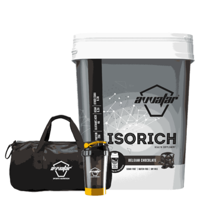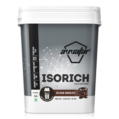 Avvatar Isorich Whey Protein in a 4kg pack delivers 28g of premium whey isolate protein per serving, with 114 servings of rich Belgian Chocolate flavor for optimal muscle recovery and strength.