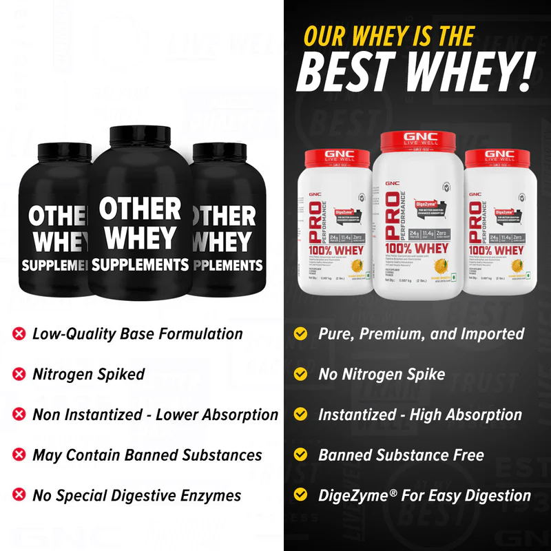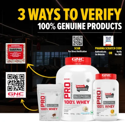 Plus, the formula has 5.5gms of BCAAs that help build lean muscles and reduce muscle cramps & fatigue during your super-active workout sessions. GNC’s Pro Performance 100% Whey is also packed with 9 essential amino acids that expedite muscle recovery. For digestion comfort, this whey is formulated with special digestive enzymes and has zero gluten for easy digestion.