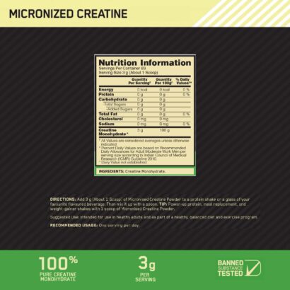 How To Use: Add 3g (About 1 Scoop) of Micronized Creatine Powder to a protein shake or a glass of your favorite flavoured beverage. Mix it up with a spoon. Tip: Power-up your protein, meal replacement, and weight-gainer shakes with 1 scoop of Micronized Creatine Powder